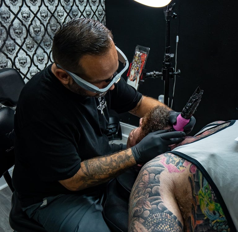 Matt is our go-to artist for breathtaking realism and expert cover-ups. He's renowned in the Lewisville area for his incredible precision, smooth shading, and the ability to bring a subject to life on skin. Whether you're looking to memorialize a loved one, a beloved pet, or an iconic movie character, Matt has a gift for capturing the essence and fine details of any photo-based reference.